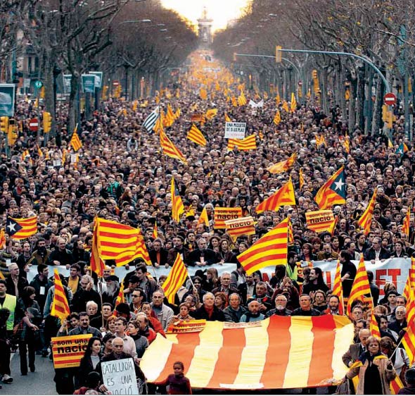 Demonstracja odbyła się pod hasłem „Jesteśmy narodem, to my decydujemy“. Katalończycy nieśli czerwono-żółte flagi i napisy „Jesteśmy narodem” oraz „Żegnaj Hiszpanio”.