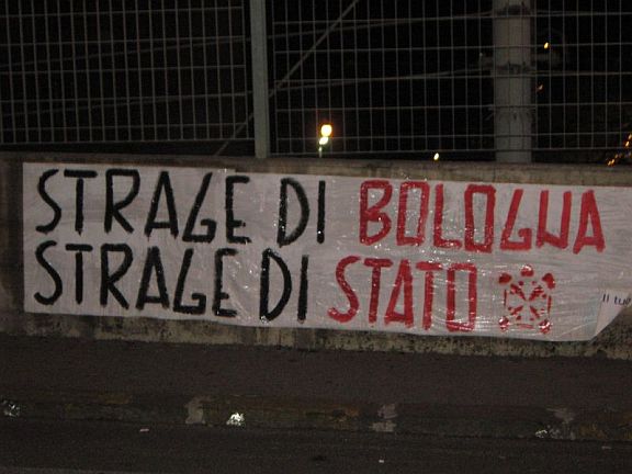 Jak co roku włoskie środowiska narodowo-radykalne w rocznicę masakry przeprowadzają różnego typu akcje informacyjne, żądając PRAWDY i wyrażając solidarność z więzionym u po sfingowanym procesie Luigim Ciavardinim.