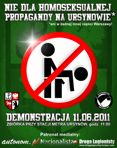 Stowarzyszenie Patriotyczne Zjednoczony Ursynów oraz warszawscy Autonomiczni Nacjonaliści zapraszają wszystkich zwolenników tradycyjnych wartości na demonstrację, której celem jest ukazanie sprzeciwu dla tego typu posunięć lokalnych urzędników. Zbiórka o godzinie 11:00 przy stacji metra Ursynów (obok pasażu przy al. KEN). Patronat medialny nad akcją obejmują serwisy Autonom.pl, Nacjonalista.pl oraz kibicowsko-narodowy e-zine Droga Legionisty.