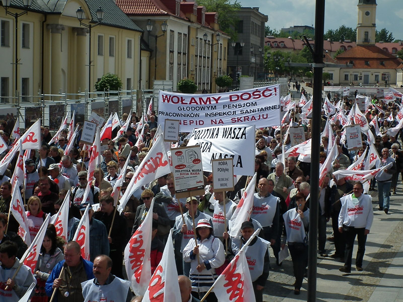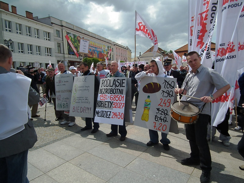 25 maja w Białymstoku miała miejsce manifestacja zorganizowana przez NSZZ Solidarność. Związkowcy chcieli w ten sposób zaprotestować przeciwko coraz większej drożyźnie, ubóstwu i stale powiększającym się bezrobociu. Postulaty, jakie wysunięto to: czasowe obniżenie akcyzy na paliwo, większe pieniądze na walkę z bezrobociem, zwiększenie liczby osób uprawnionych do korzystania z pomocy społecznej, wyższe świadczenia z pomocy społeczne, podniesienie płacy minimalnej.
