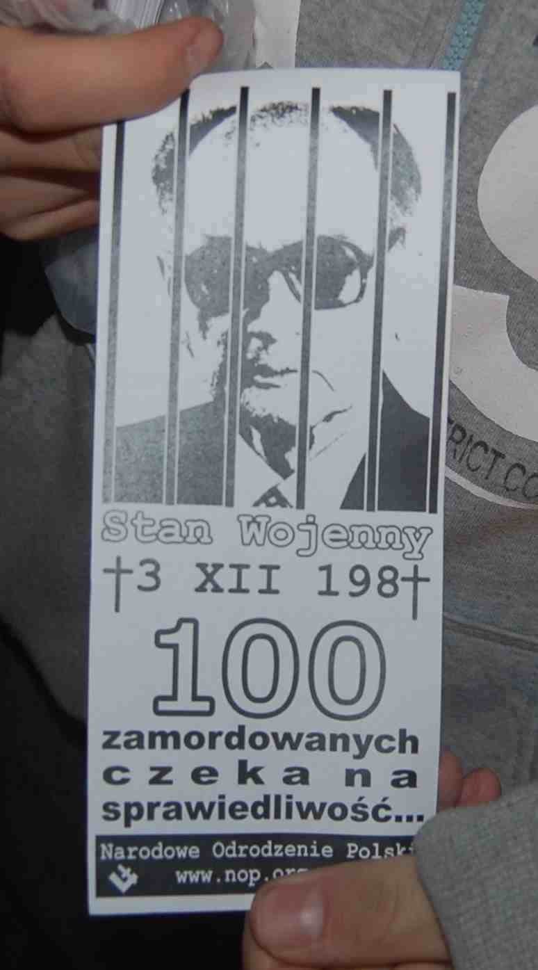 Podobnie w Słupsku, przedstawiciele NOP zorganizowali akcję upamiętającą wprowadzenie stanu wojennego. Rozprowadzono około 400 ulotek. Akcją wzbudziła bardzo duże zainteresowanie.