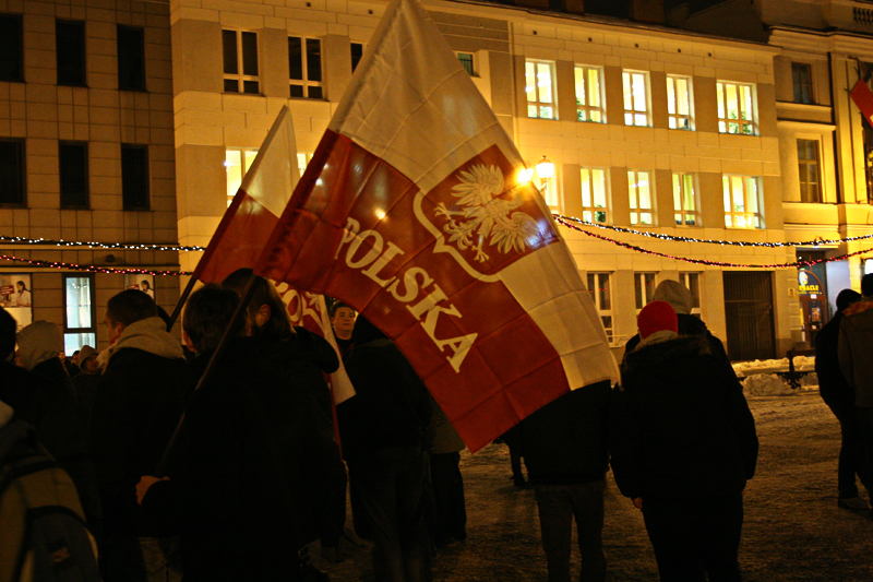 Primo, akcja w Białymstoku nie była stricte nacjonalistyczną, stąd też pojawiły się tam, podobnie jak w całej Polsce, różne hasła, transparenty, maski etc. Nie zauważyłem, aby ktoś tu, bo jak rozumiem „per Wy” to o nas chodzi, posługiwał się jakimś symbolem w celu wkupienia się w łaski kogoś. Same takie insynuacje są żałosne. Dziękujemy za ten piękny wykład nt. kultury popularnej – na szczęście nie zawsze stosowanie względem innych swojej miary jest zasadne.