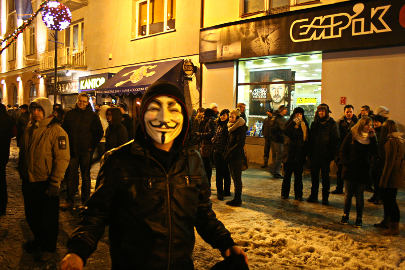gdyby ktoś nie wiedział: maska, używana przez Anonymous pochodzi z komiksu „V jak Vendetta” Alana Moore’a ( anarchisty), który narzekał, że film na podstawie komiksu był za mało anarchistyczny. Premierze filmu towarzyszyły zresztą akcje informacyjne, pod kinami rozdawano ulotki „A jak Anarchia”. Może zaciekawi was fakt, że główny bohater walczył z faszystowską (przepraszam, skrajnie konserwatywną) dyktaturą i homoseksualiści są tam postaciami pozytywnymi.
