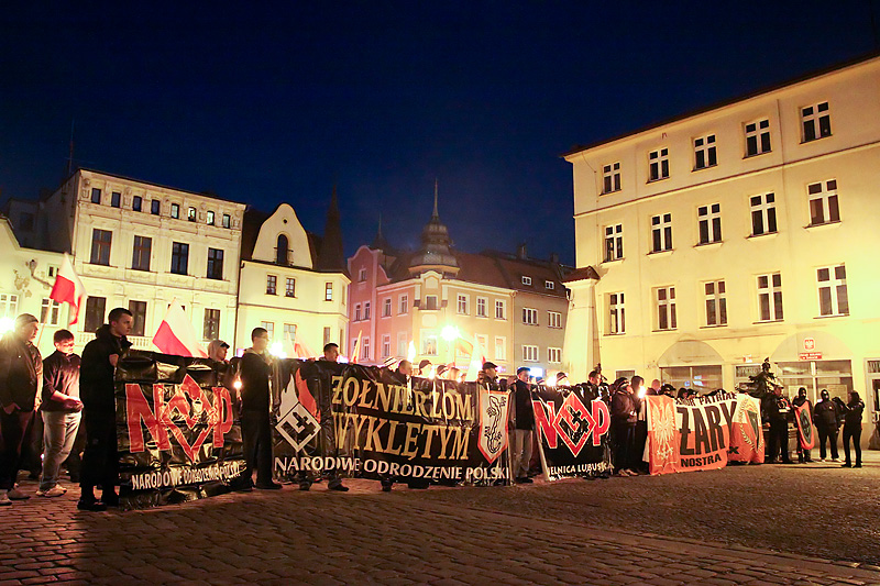 Obchody Dnia Żołnierzy Wyklętych w Żarach (lubuskie) zorganizowało Narodowe Odrodzenie Polski we współpracy z kibicami lokalnego klubu Promień Żary. Akcja zgromadziła ponad 200 osób, w tym delegacje zielonogórskich kibiców z Lechii i Falubazu oraz działaczy Falangi. Manifestacja rozpoczęła się od minuty ciszy dla uczczenia ofiar katastrofy kolejowej na Śląsku. Następnie głos zabrał Marek Marchlewicz, pełnomocnik Dzielnicy Lubuskiej NOP. Powiedział on m.in:
