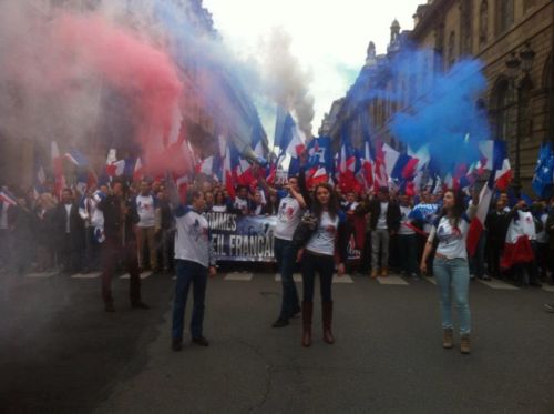 Kilka tysięcy aktywistów Frontu Narodowego oraz jego młodzieżówki (Front National de la Jeunesse) uczestniczyło w tradycyjnej manifestacji w Paryżu. Przewodnicząca FN Marine Le Pen zgodnie krytykowała partie lewicy i prawicy, zaapelowała o społeczną sprawiedliwość i zdecydowanie wystąpiła przeciwko podporządkowaniu Francji decyzjom podejmowanym w Brukseli i Waszyngtonie. Obecny system polityczny nazwała szaleństwem na które składa się euro, otwarte granice, niekontrolowana imigracja oraz poprzez absurdalną politykę oszczędności „ciągłe mówienie tak’ Brukseli i Berlinowi i, we wszystkich okolicznościach, magnatom finansjery, ich sługusom w Europejskim Banku Centralnym czy Komisji Europejskiej”.