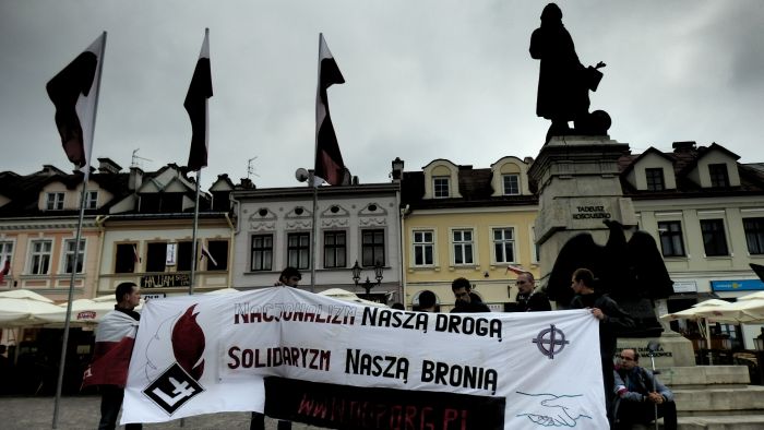 Pierwszomajowa demonstracja w Rzeszowie, zorganizowana przez Dzielnicę Podkarpacką NOP, przebiegła pod hasłem „Nacjonalizm naszą drogą, Solidaryzm naszą bronią”. Podczas przemarszu głównymi ulicami, uczestnicy manifestacji skandowali hasła dobitnie świadczące o narodowym oraz solidarystycznym charakterze Święta Pracy, urozmaicony repertuar obejmował m. in. takie okrzyki jak: „Polska dla Polaków – Polacy dla Polski”, „Godna praca – godziwa zapłata”, „Precz z wyzyskiem, precz z kapitalizmem”, „Czy to Rzeszów, Gdańsk czy Kraków, praca w Polsce dla Polaków”, „Trzecia Droga – Nacjonalizm”, oraz wiele innych. Podczas krótkiego przystanku pod biurem PO, nie obyło się bez spontanicznych „pozdrowień” dla partii rządzącej, poprzedzonych treściwym przypomnieniem antyspołecznych dokonań rządu Donalda Tuska.