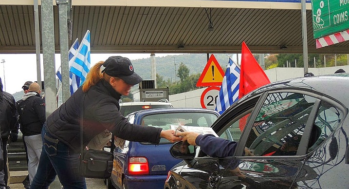 W zeszły weekend, narodowi rewolucjoniści ze Złotego Świtu przeprowadzili akcję blokowania bramek poboru opłat za przejazdy autostradowe niedaleko miasta Eleusis, w regionie Attyki. Jest to kolejny taki akt protestu wobec skandalicznych podwyżek podatku od przejazdu, które zawsze mają miejsce w momencie, gdy jest największe nasilenie ruchu samochodowego (np. przed świętami lub po nich). Nacjonaliści przejęli bramki i wywiesili na nich sztandary swojej formacji. Kierowcom rozdano dziesiątki tysięcy materiałów promujących narodową rewolucję.