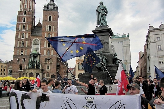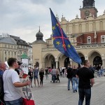 Również na Rynku tego dnia odbywał się „piknik europejski”, w związku z tym nacjonaliści w asyście przekreślonych flag UE, wykrzyczeli co myślą o tym tworze skandując: „Unia Europejska to banda złodziejska”, „Złodzieje”, „Precz z UE” oraz „Wczoraj Moskwa, dziś Bruksela suwerenność nam odbiera”.
