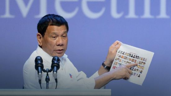 Od chwili wyboru na prezydenta Filipin Duterte prowadzi walkę z handlem narkotykami i narkomanami, w toku której – według publikowanych danych – zabitych zostało już ponad 2 tys. osób, a 3 tys. zginęło w niewyjaśnionych okolicznościach. „Tutaj mamy 3 miliony narkomanów. Chciałbym ich wszystkich zmasakrować, aby uratować przyszłe pokolenia przed zgubą” – oświadczył. Jego rzecznik przekonuje, że bezpardonowa walka z narkotykami ma na celu „zapewnienie przyszłości kolejnym pokoleniom i państwu”.