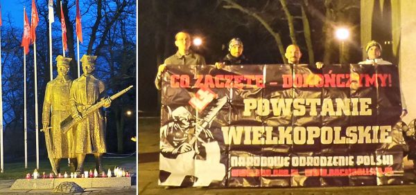Z okazji 99. rocznicy wybuchu Powstania Wielkopolskiego działacze Oddziału Poznańskiego NOP przeprowadzili akcję „Co zaczęte – dokończymy!”. Nacjonaliści, wolni od fascynacji niewolniczej współczesnej prawicy przypominają, że skuteczny niepodległościowy zryw Wielkopolski blisko 100 lat temu to nie tylko machanie flagą i „znicze z okazji”, ale konkretny testament polityczny na dziś: ponowna walka o odzyskanie przez Polskę statusu Niepodleglego Państwa, dzisiaj nieokreślonego tworu administracyjnego zarządzanego przez obce siły zewnętrzne z Brukseli, Waszyngtonu i Tel-Avivu.