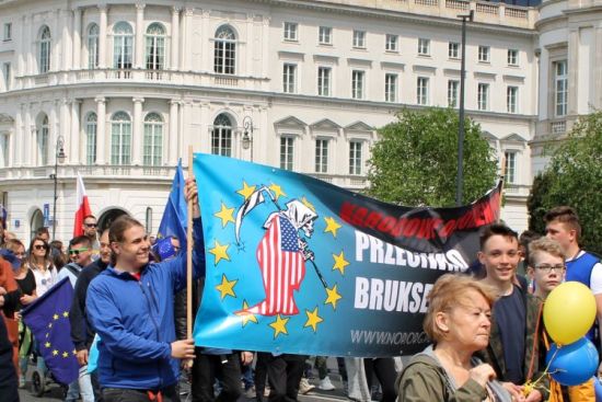 NOPowcy weszli w paradę jak w masło i przez dłuższy czas wzbogacali przekaz przemarszu banerem „Narodowe Odrodzenie Polski – przeciwko brukselskiej okupacji”. Ten jakże cenny wkład propagandowy w ideę wolnej Europy przerwała interwencja ochrony z firmy „SOWA” (ale już chyba jest to Sowa bez przyjaciół). Nacjonaliści, przepełnieni misjonarskim żarem ruszyli więc na tzw. „Miasteczko Schumana”, rozdając antyunijne materiały, rozmawiając z ludźmi i rzecz jasna nadal świecąc po oczach antybrukselskim banerem. Znów interweniowała SOWA, wsparta tym razem przez spieszony oddział policji.