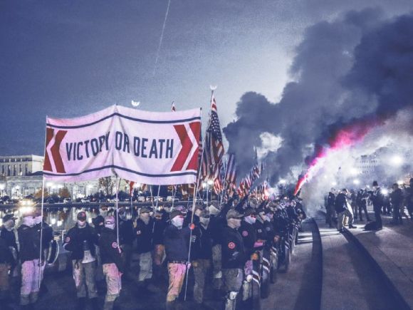 Nasza ulubiona Ameryka. Biała, tradycyjna, walcząca przeciwko syjonistycznej tyranii. Działacze Patriot Front po raz kolejny przybyli do Waszyngtonu i przemaszerowali w samym centrum miasta – od Mauzoleum Lincolna aż do Kapitolu – z antysystemowymi hasłami. Odzyskać Amerykę z rąk tych, którzy niszczą tożsamość, moralność i rodzinę. Na czele pochodu niesiono baner z wymownym napisem „Zwycięstwo lub śmierć”.