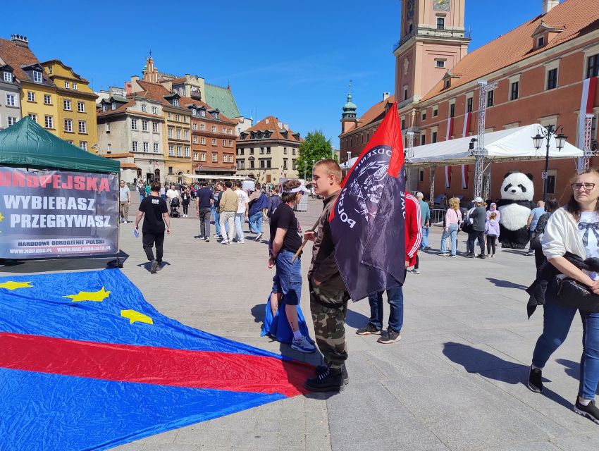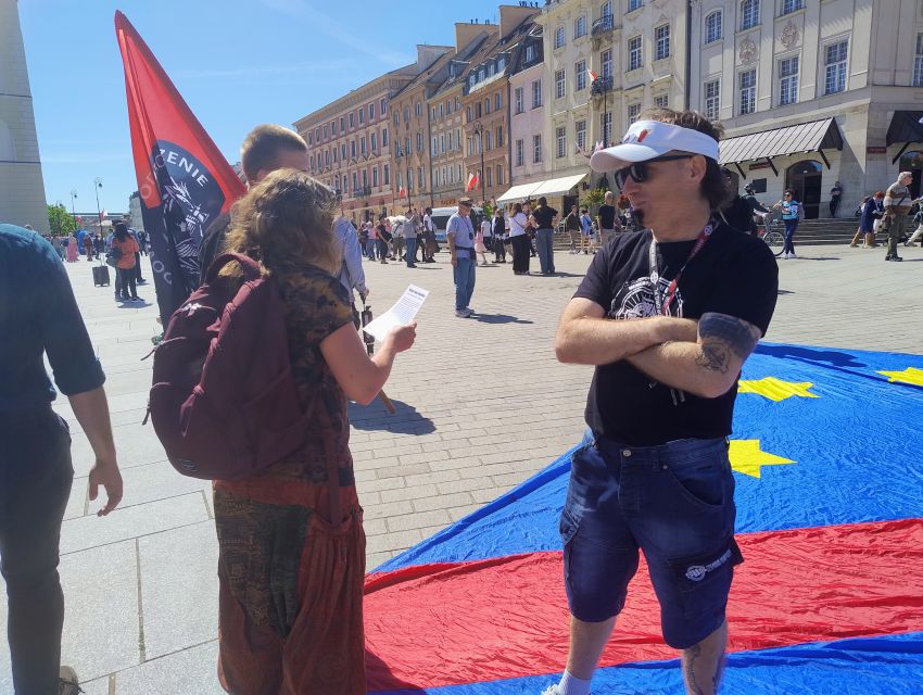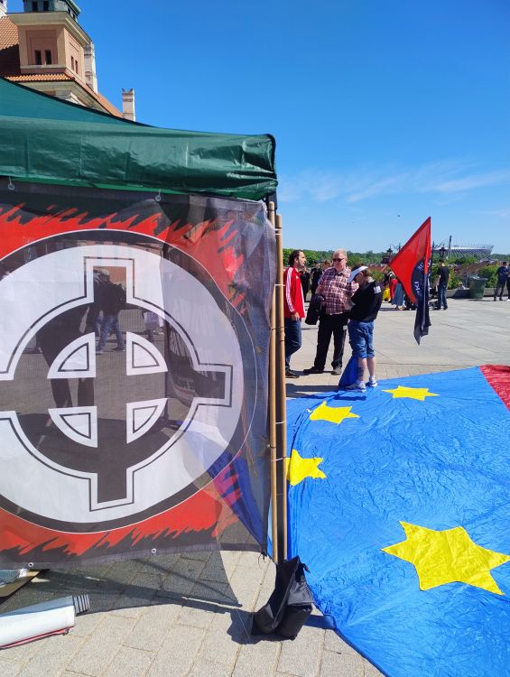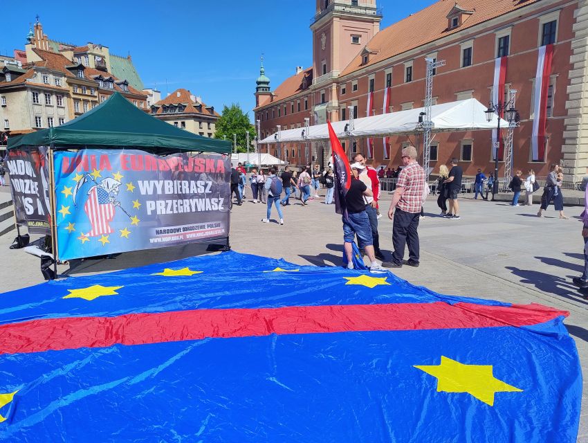 1 maja obchodziliśmy smutną, 21 rocznicę pozbawienia Polski niepodległości. Tego bowiem dnia w roku 2004 nasz Kraj popadł w kolejną, po sowieckiej, niewolę – tym razem tzw. Unii „europejskiej”, która swą nazwę bez wątpienia zawdzięcza temu, że krok po kroku, rok po roku, dusi suwerenność kolejnych państw naszego kontynentu. O tym, czym naprawdę jest UE i jak ważna dla naszego rozwoju jest Niepodległa Polska było NOPowskie „Spotkanie z Nacjonalizmem”, zorganizowane na Pl. Zamkowym w Warszawie w czwartek 1 maja 2025. Były rozmowy z warszawiakami, świetna oprawa graficzna i muzyczna, ulotki inne materiały promujące polską Niepodległość.
